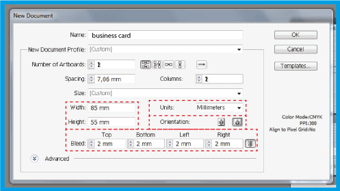 .In der Option setzen Sie in allen Feldern 2 mm.